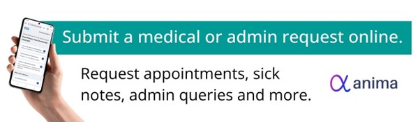 To request a home visit, please make us aware when you are submitting an online request on Anima or when you speak to a call handler or receptionist.